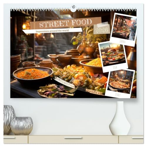 STREET FOOD Impressions around the world (High Quality Premium Wall Calendar 2026 DIN A2 landscape),CALVENDO 12 Month Wall Calendar: Enjoy international charm and delights