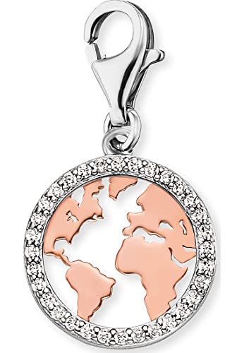 Engelsrufer Damen-Charm in Form einer Weltkarte, aus 925er Sterling Silber, mit Zirkonia Steinen, Karabinerverschluss, Größe: 13,8 x 11,7 cm, ERC-WORLD-BICOR-ZI