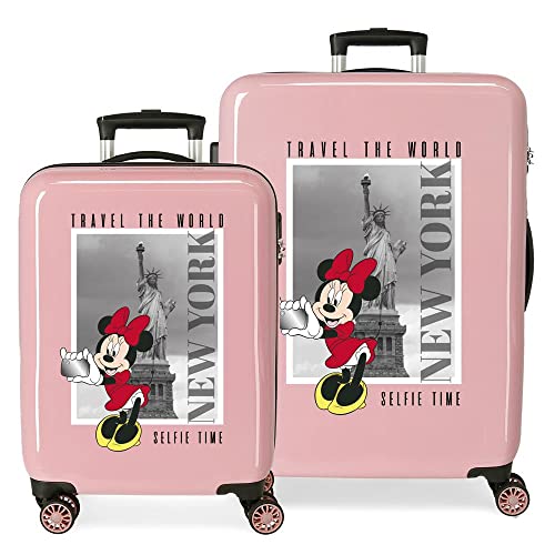 Disney Mickey och Minnie Travel The World New York Resväskor Set Naken 55/68 cms Stelt ABS Kombinationslås 104L 6 kg 4 Dubbla hjul Bagage Hand, Rosa, Talla única, Bagageuppsättning