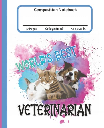 World’s Best Veterinarian - Animal Aesthetic Composition Notebook: Gift for Veterinary Professionals, Female Veterinarian, Vet Tech, or Student | Cute Turquoise & Pink Dog, Cat, Rabbit Cover with Paw Prints | College Ruled | 110 Pages | 7.5" x 9.25"