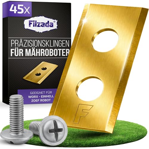 Filzada® 45x Titanium Replacement Blades passar till alla Worx Landroid robotgräsklippare - Ultraslipade ersättningsblad - inkl 45 skruvar - blad passar även till Einhell robotgräsklippare