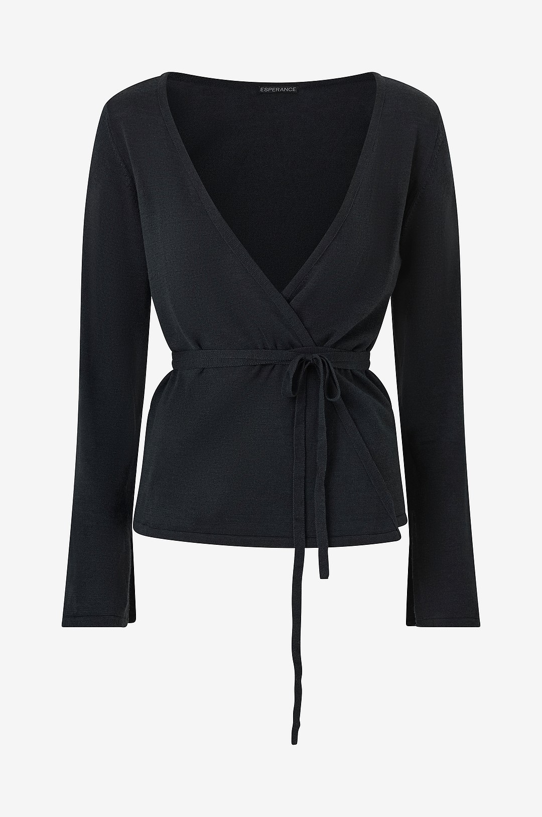 Esperance - Cardigan Gun Ana Merino Wrap Waist - Svart