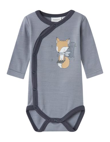 Name IT Baby pojkar Nbmwillit ull Ls Wrap body långärmad body, grå, 74, GRÅ, 74