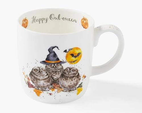 Royal Worcester Wrendale Deigns Halloween 0,4 liter mugg ugglor under en pumpa månsken uggla o-mellan