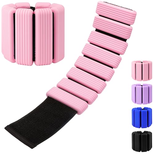 Handledsvikter – justerbara ankelvikter – set om 2 (0,5 kg vardera) | Fotvikter i silikon för kvinnor | Yoga, pilates, dans, barer, löpning, simning, kardio, gym, promenad - rosa