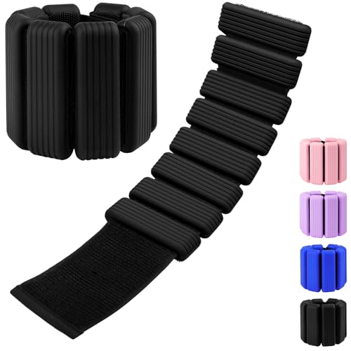 Handledsvikter – justerbara ankelvikter – set om 2 (0,5 kg vardera) | fotkängor i silikon för kvinnor | yoga, pilates, dans, barer, löpning, simning, kardio, gym, promenad - svart
