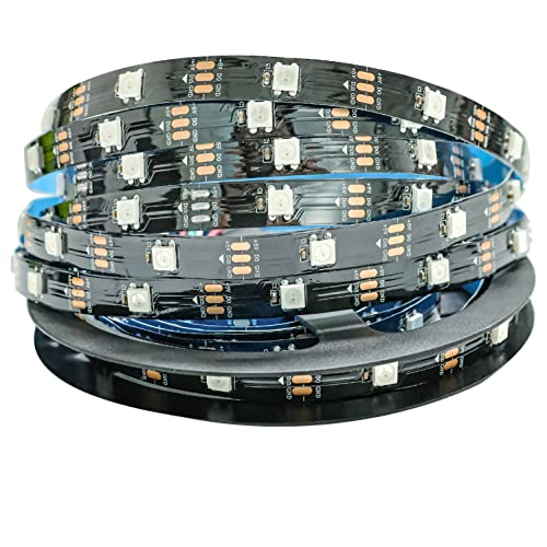 RGB LED-remsor WS2812B individuellt adresserbar flexibel svart PCB Dream Color Strip, IP65-vattentätt, gör-det-själv-projekt med kontroll (DC 5 V), för TV, fest, jul etc. (1 m, 60 LED/m)