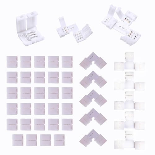 GTIWUNG 3-stifts RGB LED-remsanslutningskit, 20 x bro LED-remsor, 10 x L-& T-formade kontakter, 10 x mellanrumslösa kontakter, för 10 mm 5050 WS2812B LED-remsa WS2811