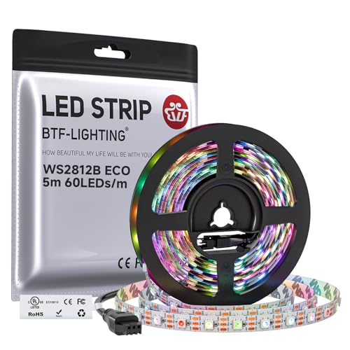 BTF-LIGHTING WS2812ECO RGB LED-remsa 5m 60 LEDs/pixels WS2812 Legeringstråd Individuellt adresserbar DC5V Svart PCB LED-remsbelysning IP30 Icke vattentät för DIY-projekt