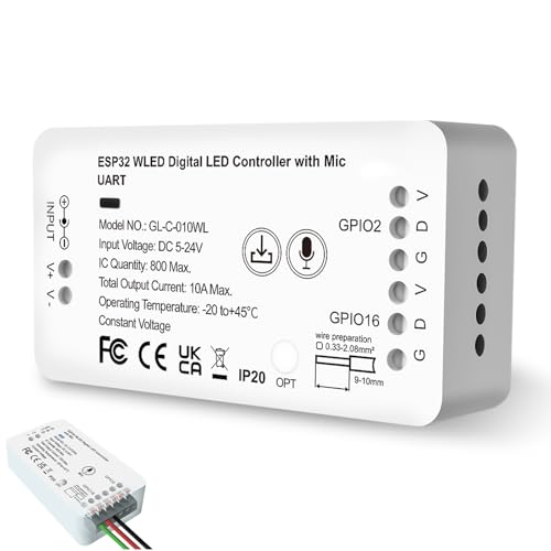 WLED-styrenhet ESP32 – mångsidig adresserbar LED-stripskontroll, WLED ControlLer med mikrofonurladdning för NeoPixel (WS2812B, WS2811, SK6812, WS2801 APA012, APA104) och LED-styrning baserad på
