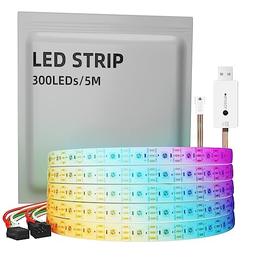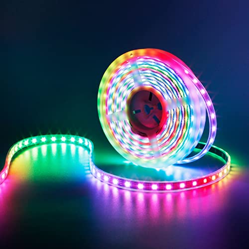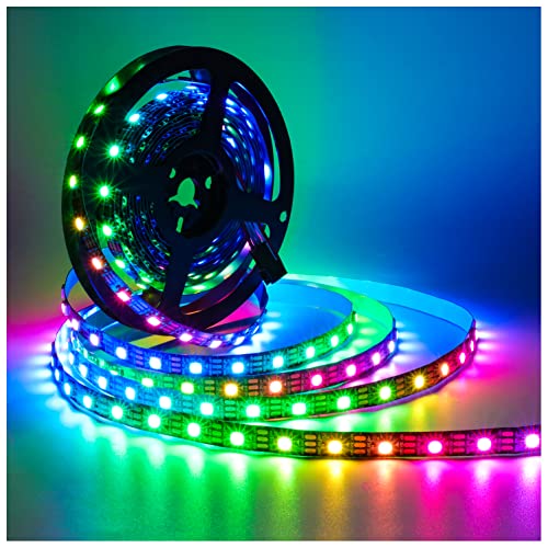 Tesfish 5V WS2812B LED Remsa, 5 Meter RGB LED Pixel Strip 5050 300 LEDs IP30 Flexibel Fullfärg Individuellt Adresserbar Smart LED Remsa Ljus för Reklamdekoration DIY Projekt