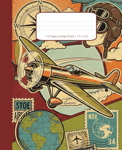Vintage Plane Composition Notebook: College Ruled Paper For School, Students, 110 page | 7.5”x9.25”
