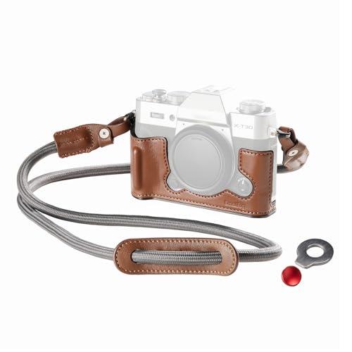 SMALLRIG X-T30 III Half Leather Case med axelrem för FUJIFILM X-T30 / X-T30 II/X-T30 III, Kameraväska i retrostil med aluminiumram och avtryckarknappslock, brun - 5670
