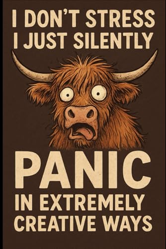 Panic in Extremely Creative Ways 6x9 lined notebook: A Funny Highland Cow Notebook for Stressy but Blessed Humans