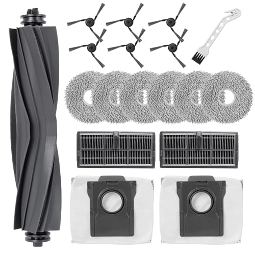Geoviizon 17 stycken tillbehör för Dreame X40 Ultra/L40 Ultra/X40 Ultra Complete/MOVA P50 Pro Ultra robotdammsugare, 1 huvudborste, 4 Hepafilter, 4 dammpåsar, 4 torkdukar, 4 sidoborstar reservdelar