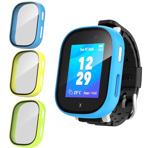 Upeak 3 stycken skyddsfodral för Xplora X6 Play Kids displayskydd, hårt PC-fodral, skyddsfilm, reptåligt stötsäkert fodral, runt skydd, fodral för X 6 lekklocka barn, järnhaltig