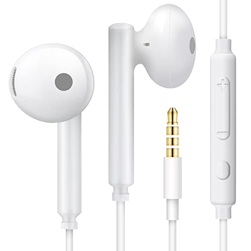 MAS CARNEY WH6 Hörlurar med kabel, Semi In Ear-hörlurskabel, hörlurar med kabel 3,5, för MP3/MP4, Ipad, Honor 6X/7X/8X/9/10, Huawei, Samsung Galaxy S6/S7/S8, Redmi Note 8/9 – vit