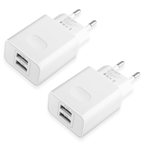 2-Pack 12W USB-Laddare, 5V2.4A 2-Ports Strömadapter, Adapter för USB-Kontaktuttag för Apple Phone 16/15/14/13/12/11/XS Max/XR/X/8/8 Plus/7/6S/6/SE/5S/5C/iPad Mini/Air/Tablet Kids/Hörlurar