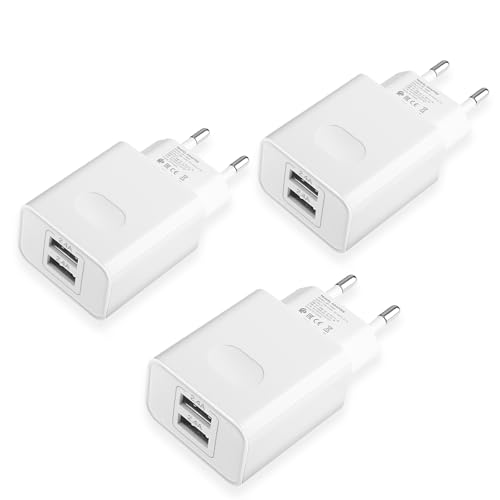 3-Pack 12W USB-Laddare, 5V2.4A 2-Ports Strömadapter, Adapter för USB-Kontaktuttag för Phone 16/15/14/13/12/11/XS Max/XR/X/8/8 Plus/7/6S/6S Plus/6/SE/5S/5C/iPad Mini/Air/Tablet Kids/Hörlurar