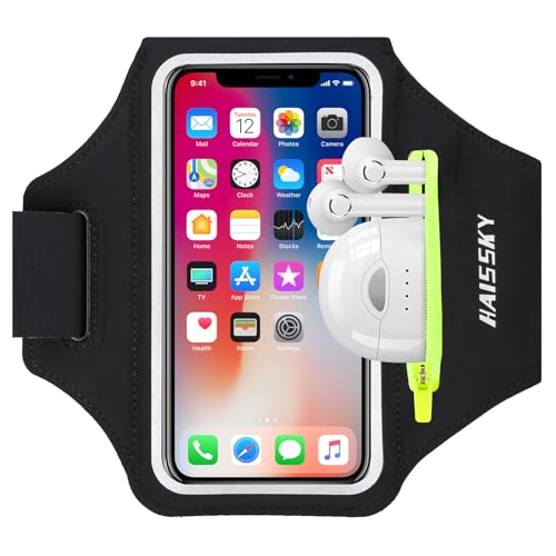 HAISSKY Sportarmband med ficka för hörlurar, sportarmband för iPhone 14 13 12 11 Pro Max XR XS X 8 7, smarttelefon löpning armband för jogging cykling vandring