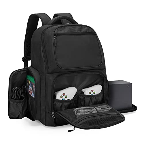 Trunab Reseryggsäck Kompatibel med Xbox Series X-Bärväska, Spelförvaringsväska med Inre Avdelare för Xbox X/S-Konsol, Flera Fickor för 15,6-tums Bärbar Dator och Andra Speltillbehör