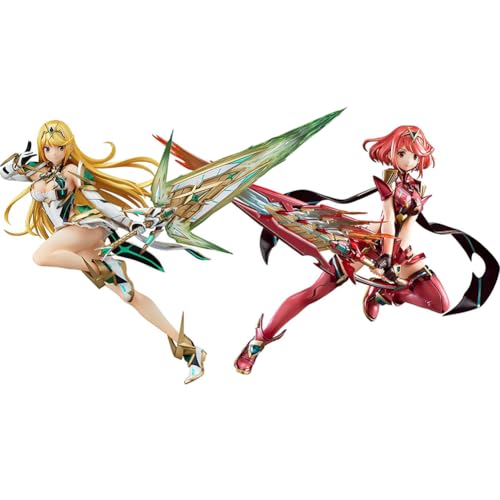 Xinchangda 2 st Xenoblade 2 figurer 21 cm Anime Mythra Hikari och Pyra Homura actionfigurer staty, samlarfigurin, skrivbordsdekoration, gåvor för fans