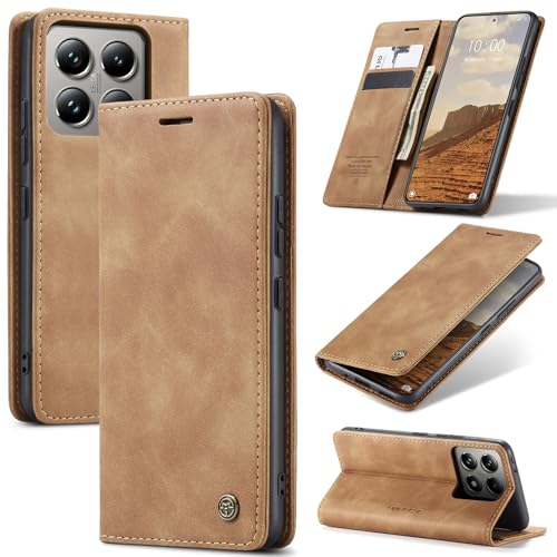 Samokor Fodral för Xiaomi 14T Pro 5G, Mobilbokfodral PU-läderfodral flip-Plånbok Kortplats Stativfunktion Magnetisk Stötskydd för Xiaomi 14T Pro, Brun