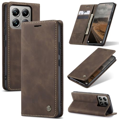 Samokor Fodral för Xiaomi 14T Pro 5G, Mobilbokfodral PU-läderfodral flip-Plånbok Kortplats Stativfunktion Magnetisk Stötskydd för Xiaomi 14T Pro, Kaffe