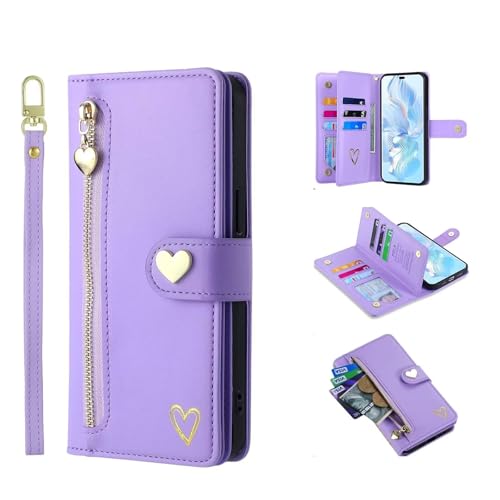 WOWUDI för Xiaomi 14T 5G dragkedja telefonfodral med Stativfunktion,korthållare,9 kortplatser,stor kapacitet och sött fashionabelt mönster kärlek Skyddsfodral- purpur