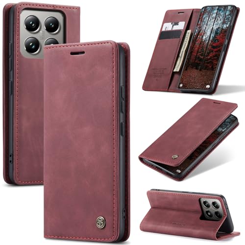 Samokor Fodral för Xiaomi 14T Pro 5G, Mobilbokfodral PU-läderfodral flip-Plånbok Kortplats Stativfunktion Magnetisk Stötskydd för Xiaomi 14T Pro, Vinröd