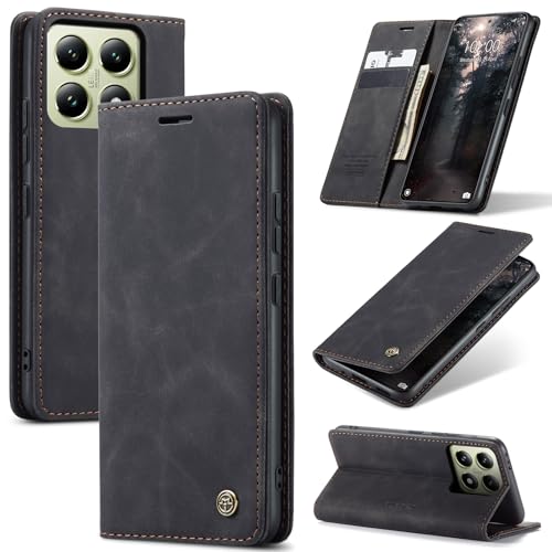 Samokor Fodral för Xiaomi 14T 5G, Mobilbokfodral PU-läderfodral flip-Plånbok Kortplats Stativfunktion Magnetisk Stötskydd för Xiaomi 14T, Svart