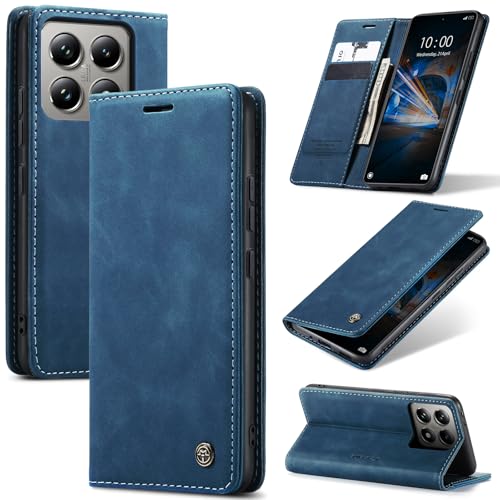 Samokor Fodral för Xiaomi 14T 5G, Mobilbokfodral PU-läderfodral flip-Plånbok Kortplats Stativfunktion Magnetisk Stötskydd för Xiaomi 14T, Blå