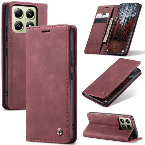 Samokor Fodral för Xiaomi 14T 5G, Mobilbokfodral PU-läderfodral flip-Plånbok Kortplats Stativfunktion Magnetisk Stötskydd för Xiaomi 14T, Vinröd