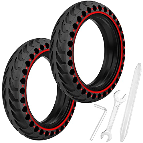 Solid Tyres, 2-Piece E Scooter Tyres, Compatible with Xiaomi M365 / Pro 2, 8 1/2 x 2 Scooter Tyres, Solid Rubber Tyres, E Scooter 8.5 Inch with Mounting Tool (Red)