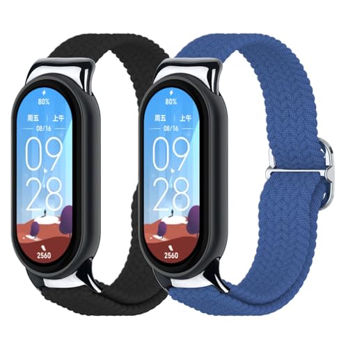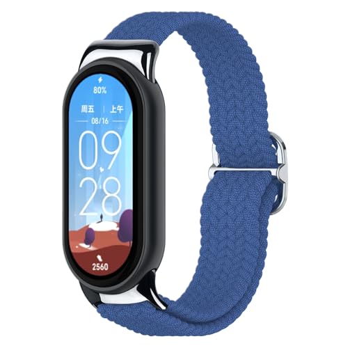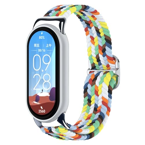 AXFEE Nylonögla remmar kompatibla med Xiaomi Smart Band 9/8, elastisk nylon klockrem, mjuka andningsbara sportflätade remmar, justerbart ersättningsarmband för kvinnor män, Nylon (Metal Connector)