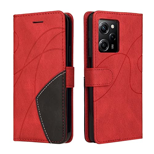 AsWant Fodral för Xiaomi Poco X5 Pro 5G - [Premium PU-läderfodral], kortplatser stötsäker läderhållare plånboksfodral för Xiaomi Poco X5 Pro 5G (röd)