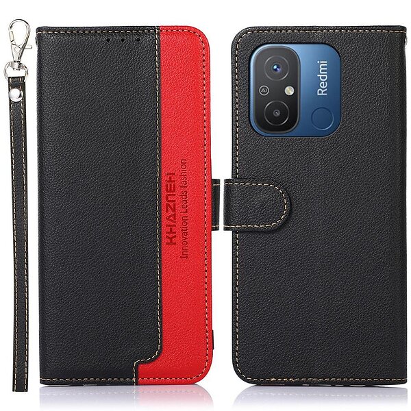 MTK KHAZNEH Plånboksfodral till Xiaomi Redmi 12C Svart/Röd