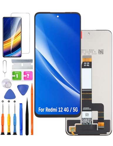 HLYGZX Ersättningsskärm för Xiaomi Redmi 12 4G 5G LCD-skärm, 23053RN02A 23053RN02Y skärm, pekskärm, Digitizer Assembly reparationsdelar sats