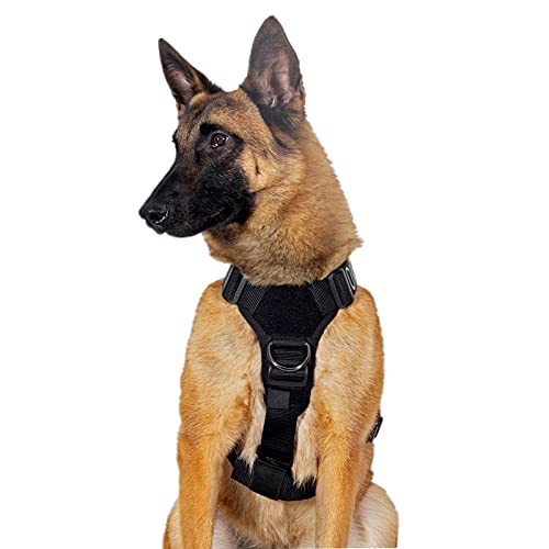 OneTigris No-Pull Hundsele, Goliath-sele med handtag, taktisk justerbar sele för hundar, valpar, jakt, vandring, träning, promenader, utomhusaktiviteter (svart, XL)