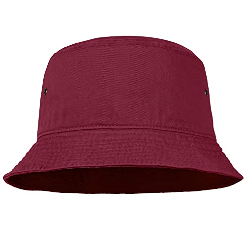Falari Buckethatt för män och kvinnor, hatt i unisex-modell, hatt i 100% bomull, fiskarhatt, vikbar och packbar för resor, fiske, jakt och sommarläger, Vinröd, L-XL