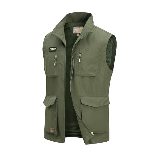 MeiLayM Herr fiskeväst utomhus lätt andningsbar fritidsjacka vintage ärmlös sportjacka jakt väst med dragkedja resor fotografi camping jakt västar, Army Green, 4XL