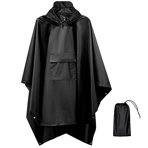 Seyobs regnponcho herr dam vattentät, regncape unisex regnrock 210T Oxford regnjacka, regnponcho cykel 3 i 1 poncho för jakt, picknick utomhus, vandring, camping, fiske, svart, L-XL
