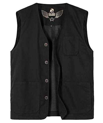 Yukirtiq Utomhus väst för män flera fickor fiskeväst fotografi ärmlös jacka jakt vandring safari resa väst, Svart, XL