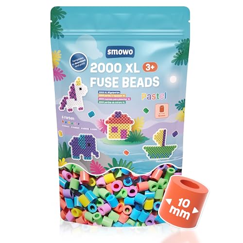 Smowo® Stora 10 mm strykpärlor 2 000 stycken för barn från 3 år – 6 pastellfärger XL plug-in pärlor – kreativt pärlset