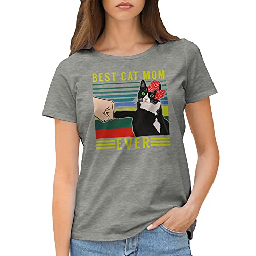 Best Cat Mom Ever Vintage Grå T-shirt för kvinnor Size XL