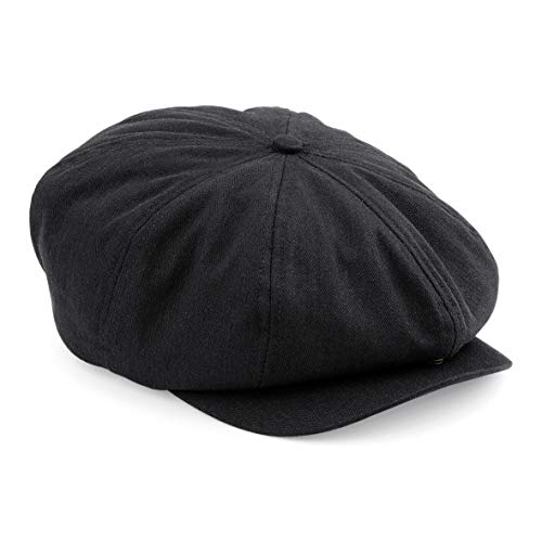ASVP Shop platt keps med topp 'Shelby' bagare pojke tidningspojke fiskbensmönster tyg keps hatt hatt, Svart, L/XL