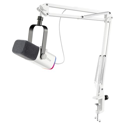 FIFINE USB/XLR Streaming Micro Gaming för PC PS4, PS5, RGB kardioid dynamisk mikrofon med stativ, för mixer, ljudkort, för spel, podcasting, sändning, röstinspelning - vit