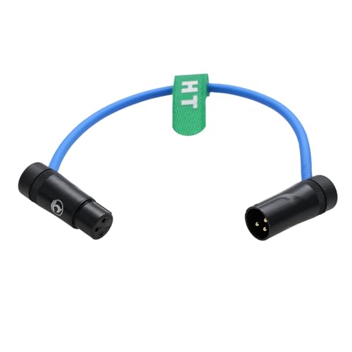 HangTon Ljudkabel för inspelare mixer mikrofon högtalare ljudenheter Mixpre 10 II Zoom F8n Zaxcom Sony Canon kamera, XLR 3-stiftskontakt till hona, låg profil högervinklad blå 30 cm