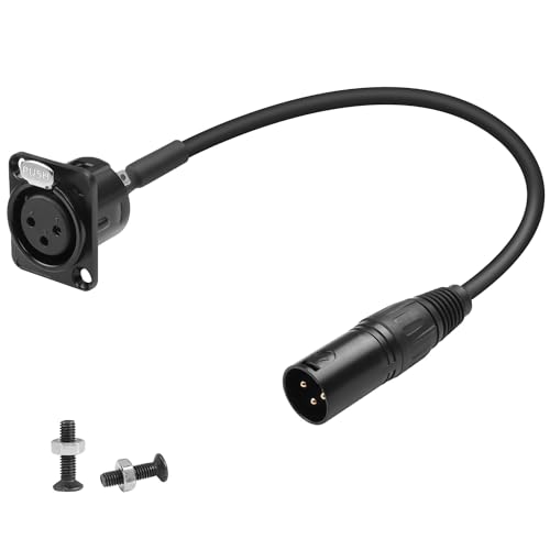 QIANRENON XLR Fast montering kort kabel adapter – förgyllt 3-stifts uttag till plugg panel montering anslutning genomföring bulkhuvud installation mik uttag, för scenbelysning mixer, 35 cm