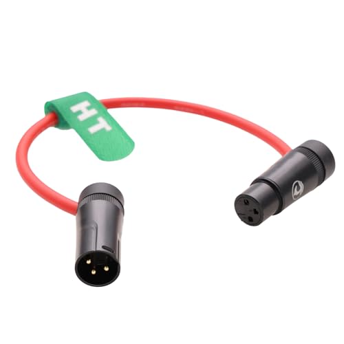 HangTon Low-Profile högervinklad XLR ljudkabel för inspelare mixer mikrofon högtalare ljudenheter Mixpre 10 II Zoom F8n Zaxcom Sony Canon-kamera, 3-stiftskontakt till hona, röd 50 cm